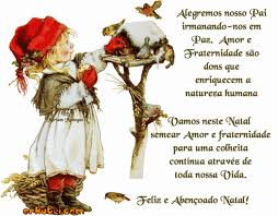 Natal é tempo de família, e como meus amigos fazem também parte da minha, eu desejo que nesta época natalina estejamos todos unidos. Não importa se não estivermos no mesmo lugar, o que importa é estarmos unidos pelos sentimentos da amizade e do amor. Feliz Natal, meus amigos!
